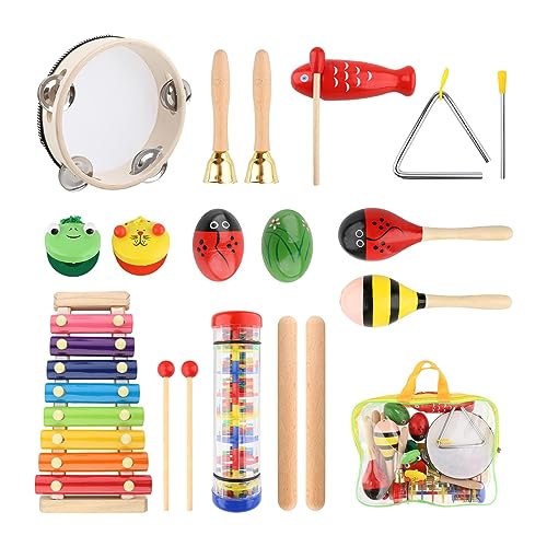 子供用のモンテッソーリ音楽おもちゃパーカッションセット。木製で安全、打楽器が10個入っており、音楽啓蒙に最適。男の子女の子向け、収納バッグ付き。