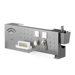 WiFiボックスハイダー – 壁取り付けケーブルオーガナイザー、大型カーボンスチールストレージ、多機能換気デザイン、電子機器&ネットワークデバイスカバー、リビングルーム用インターネットルーターガードボックス, グレー, Refer to description, ユニ。