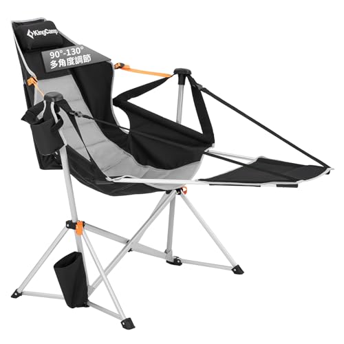 KingCamp ゆらゆらハンモックチェアは、耐荷重205kgで超快適。リクライニング、フットレスト付きの自立式折り畳み椅子。アルミ合金製で組み立て簡単、収納袋付きで室内外兼用。