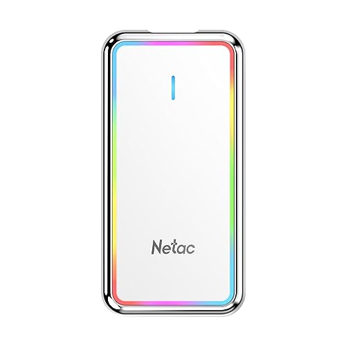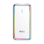 Netac 1TBポータブルSSDは、550MB/sの読み取り速度と450MB/sの書き込み速度を備え、USB 3.2 Gen 2対応で使いやすい。RGB LED照明付きで、出張やバックアップに最適な外付けストレージです。