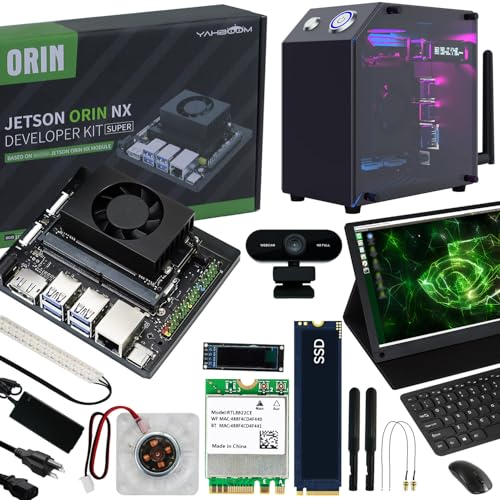Yahboom Jetson Orin NX 8GB RAM開発キット。SUPER更新対応、AI機能搭載。15.6インチタッチスクリーン、保護ケース、USBカメラ、ワイヤレスキーボード・マウスのチュートリアル付。