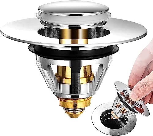 洗面用ポップアップ排水栓は、ステンレス鋼製で耐久性があり、内径34-35mmのシンクや浴槽に適用。オーバーフロー穴付きで、綺麗な排水を実現します。多用途で便利な排水用品です。