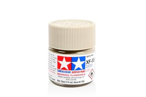 タミヤ アクリル ミニ XF55 デッキ タンは、プラスチックモデル用のアクリルペイントです。速乾性があり、発色が良く、細部の塗装に最適。適度な粘度で扱いやすく、初心者から上級者まで幅広く使用されています。