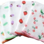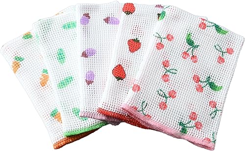 ふきん・布巾・ニット製のキッチンクロス5枚組。台拭きや食器拭きにも最適。フルーツ&野菜柄が可愛いデザインで、キッチンを華やかに演出。耐久性が高く、吸水性も良好。