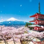 やのまんの108ピースジグソーパズル。日本風景「富士と桜吹雪の五重塔」を描く。サイズは26x38cm。ピース請求ハガキ、のり、へら、サービスカード、トリセツ付き。