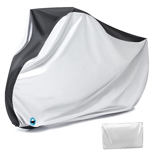 Breame自転車カバーは、厚手で防風・防塵効果があり、UVカット機能も搭載。撥水加工で雨雪にも対応し、29インチまでの自転車に適応。収納便利で盗難防止のロックホール付き。