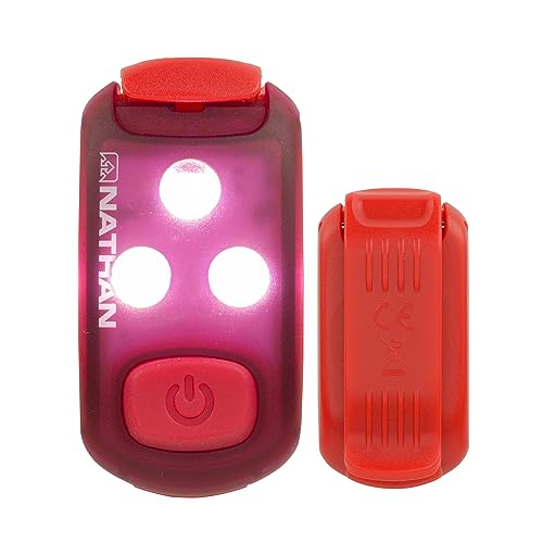ネイサンのビジビリティ LEDライト NS5113は、電池式で生活防水仕様。ストローブライト2.0で夜間の安全を確保し、クリップ式でマゼンタ色。ランニングやウォーキングに最適。