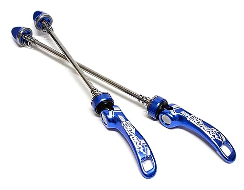 クイックレリーズ MTB・ロードバイク用のフロント・リアセット(ブルー)。軽量設計で手軽に脱着可能。耐久性もあり、サイクリングに最適なパーツです。安全性を考慮したデザイン。