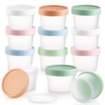 3.4オンス/100mlの詰め替え可能なプラスチック製メイクアップポット。半透明の広口デザインで、ローション、クリーム、ボディバター、パウダーなどのDIYビューティー製品に最適。多彩な12個セット。