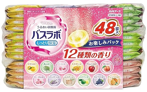 白元アース HERSバスラボ お楽しみパックは、48錠入りの大容量炭酸入浴剤です。個包装でギフトにも最適。保湿効果があり、医薬部外品として疲労回復に寄与する日本製のスキンケアアイテムです。