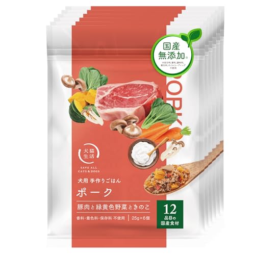 犬用手作りご飯(25g×6×6袋)は、国産・無添加のグレインフリーの総合栄養食です。獣医師と共同開発したポークフレーバーで、愛犬にぴったりのウェットフードです。