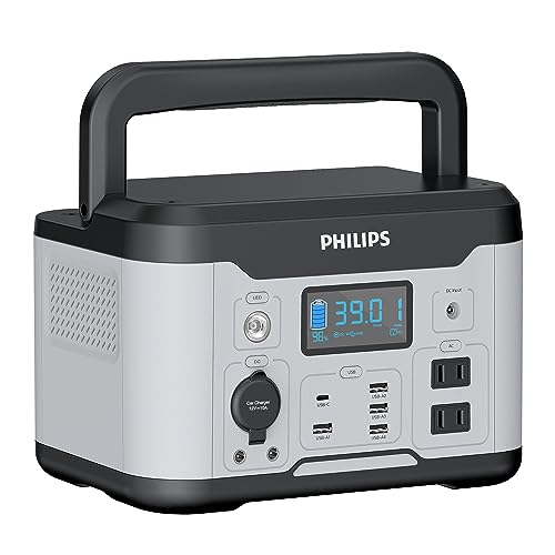 Philipsの600Wポータブル電源は、569Whの大容量で、AC出力600W(瞬間最大1200W)、USB-C最大60W、10台同時充電可能。パススルー機能搭載、BMS電池保護、キャンプや停電対策に最適。PSE認証済み。