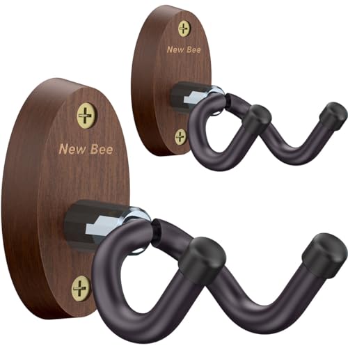 New Bee ギターハンガーは、壁掛け式でギターやベース、ウクレレ等に適用。省スペースで安定した収納が可能。簡単取り付けの2個セット。