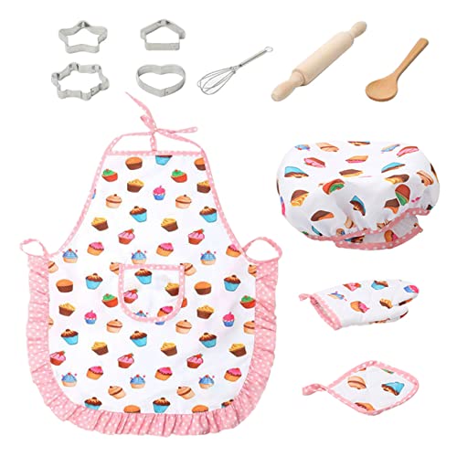 エプロン おもちゃケーキエプロンロールプレイキッチンクッキングベーキングガールズトイクッカープレイセット料理キッチンベークセットハット +エプロン 使い捨てエプロン (Size : 1set A)の高価買取ITEM