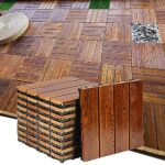 ウッドパネルジョイントマットは、無垢材の炭化処理が施された天然木製のフロアデッキ。屋内外で使用可能で、ベランダや庭、バルコニーに最適。簡単に敷くだけで設置できます。