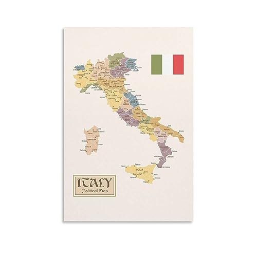 イタリアの地方州政治フラグをテーマにしたビンテージスタイルの地図ポスターです。キャンバス製で、現代的なデザインが魅力。サイズは16×24インチ(40x60cm)で、寝室やリビングの壁アートに最適な装飾アイテムです。