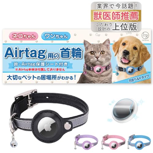 獣医師推薦の猫用エアタグ首輪。迷子防止に最適で、GPS Airtag対応。合皮ベルト、セーフティバックル、光るデザイン、鈴付き。Mサイズ、ブラックカラー。