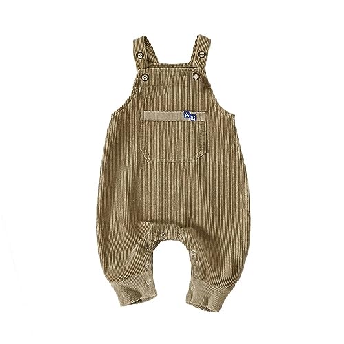Volunboyのベビーサロペットは、コーデュロイ素材で秋冬にぴったり。無地デザインで可愛らしく、男の子・女の子どちらにもお勧め。サイズは73-100cmで、カーキのポケットが特徴です。