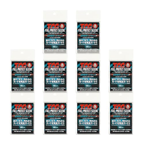 河島製作所のフルプロテクトスリーブ Sサイズは、カードを99%UV370nm波長帯で保護。380nm波長帯は85%カット、日本製でトレカケースに収納可能。3個組が10セット。
