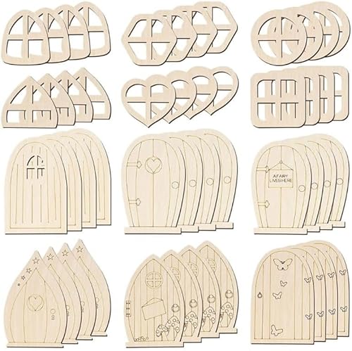 この48個の木製ガーデンドアミニ窓は、DIYキット未完成のミニチュアドアです。妖精の家の装飾に最適で、未塗装のため自由にアレンジ可能です。