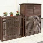 エアコンラックは木製で、耐久性があり、屋外の紫外線からエアコンを守る日よけ棚付き。シンプルなデザインで、どんな外観にもマッチし、設置も簡単です。