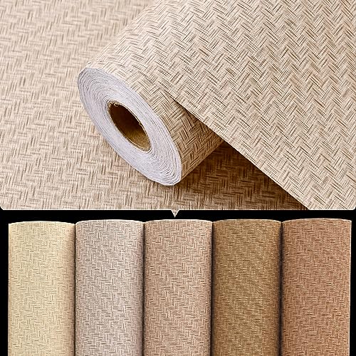 Haiminの壁紙シールは、60cm×10mの無地織物調で、麦わら織りの質感を持つリネン壁紙です。厚手で自己粘着性があり、模様替えや補修に最適。ふすま紙としても利用できます。カラーは薄茶色-1。