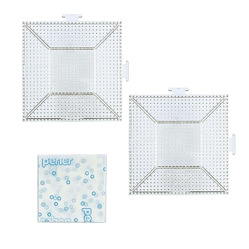 カワダのパーラービーズ プレートセット Lは、5才以上向けのアイロンビーズおもちゃです。透明な四角形プレートで、クリエイティブな作品作りが楽しめます。品番は80-30026です。