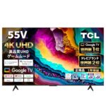 TCL 55V型 4K スマートテレビは、高画質4K解像度、HDR対応、広視野角を特徴とし、豊富なアプリにアクセス可能です。音質も良く、スリムなデザインが魅力です。