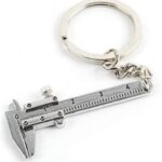 キーホルダー付きのミニキーチェーンツール。可動式ノギス定規とスライディングキーリングが特徴。シルバーカラーでファッション性も高い、便利なガジェットです。