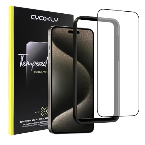CYCOKLY iPhone 15 pro用 (6.1インチ)ガラスフィルム アンチグレア 強化ガラス 液晶保護フィルム さらさら感 反射防止 指紋防止 ガイド枠付き 高価買取中