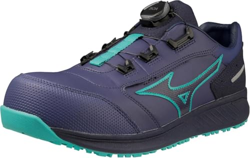 ミズノの安全靴オールマイティ SU51L BOAは、つまずき防止機能を備えたモデルです。カラーはブルー×ネイビー×エメラルドグリーンで、サイズは26.0 cmです。