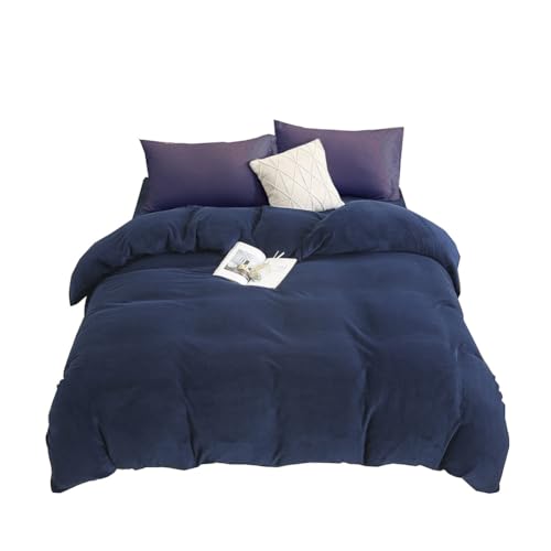 布団カバー4点セット(ダブル)は、冬用のあったかい高級マイクロファイバー製。発熱性があり、静電気抑制機能付き。厚手の起毛素材で、フランネルのふわふわ感が特徴。毛玉やホコリが出にくく、防臭・抗菌・防ダニ機能も搭載。マチ部分が30cmで、ヒモ8ヶ所付。