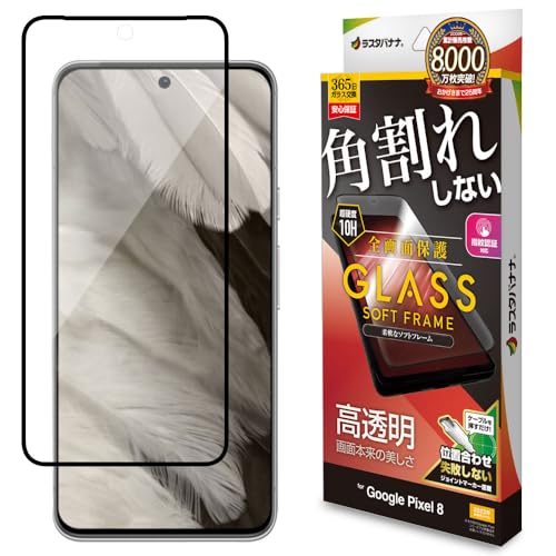 ラスタバナナのガラスフィルムは、Google Pixel 8専用の全面保護タイプで、高光沢透明設計。角割れしにくく、厚さ0.25mm、硬度10Hで耐久性も抜群。