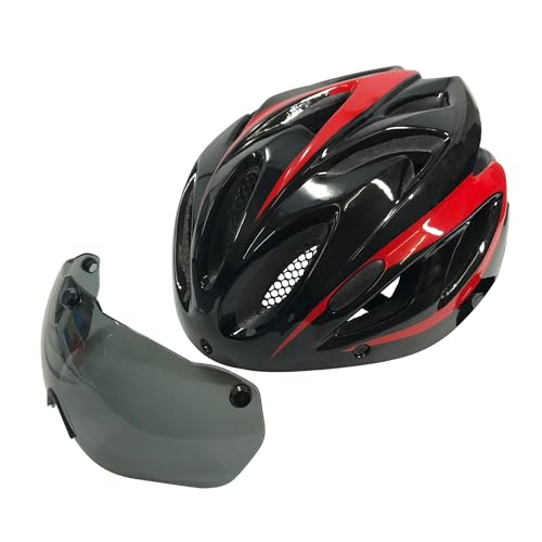 FOGLIA(フォグリア)ヘルメットは、57cm-62cm対応のレッドカラーで、シールド付き。サイズ調整可能で、各種認証を取得した安全性の高い製品です。
