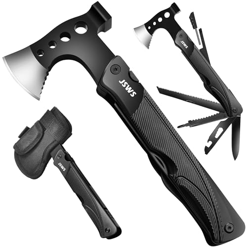 マルチツール斧ハンマーは14機能を持つポータブルハチェット。3.15インチのナイフブレード、ボトル&缶切り、ドライバー、ソーを搭載。キャンプや釣り、サバイバルに最適。クリスマスギフトにもおすすめ!