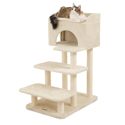 キャットタワーシニアエスカリエは、高齢猫向けの安全設計で、低いステップと安定した構造が特徴。快適な休憩スペースや爪研ぎも備え、愛猫の快適な生活をサポートします。