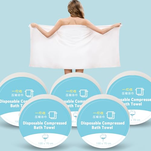 ERHAOGの圧縮バスタオルは100*70cmサイズ、使い捨てで5枚入り。旅行やスポーツ、サウナに最適な速乾性のある超大判タオルです。携帯に便利な設計。