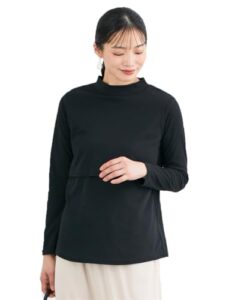 [ニッセン] マタニティTシャツ・カットソー 秋 冬 【産前・産後 授乳服】 授乳しやすい モックネック長袖マタニティTシャツ 黒 マタニティ3L