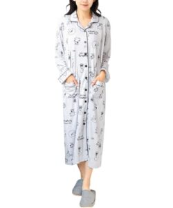 [ON NISHIKI] スヌーピー マタニティ パジャマ 長袖 ワンピース 前開き 授乳口付き 春 秋 パウダーストレッチ 伸縮性 シワになりにくい ロング丈 授乳服 ネグリジェ マタニティウェア (スヌーピーグレー/M/54310)