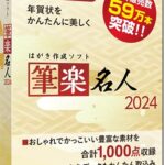 筆楽名人2024はWin・Mac両対応の年賀状作成ソフトです。2024年の干支、龍・辰のイラストを使ったテンプレートが豊富に揃っています。マックOSに対応し、簡単におしゃれな年賀状を作成できます。