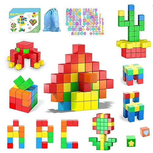 AMYCOOL マグネットパズルは64個の30mmブロックで構成され、立体形状や算数を学ぶのに最適な知育玩具です。幼児教室や誕生日・クリスマスのプレゼントにどうぞ。