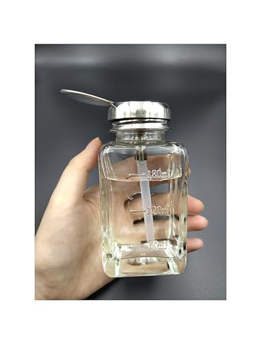 YYNGJCKの6オンス(180ml)空のガラスポンプボトルは、詰め替え可能なプッシュダウンディスペンサーです。メイクアップやネイルポリッシュリムーバーに最適なキャップ付き1パック商品。