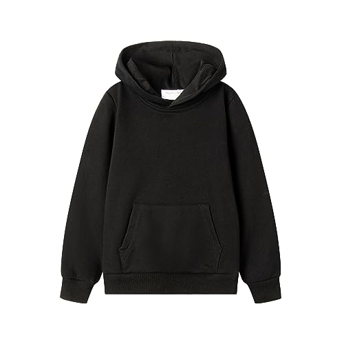 LSMUDKINGDOMのキッズパーカーは、男の子用の黒無地で裏パイル仕様のスウェットプルオーバーです。春秋に最適なデザインで、サイズは110。快適な着心地で子供服としておすすめです。