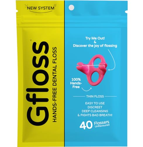 Gflossハンズフリーデンタルフロスは、40個入りで使いやすく目立たないフロッサーです。大人用、トラベル用に最適で、薄いソフトフロスはきつい歯にも対応。ワックス無香料でPFASフリーのオーラルケア製品です。