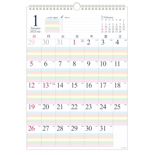 壁掛カレンダー【2026年 1月始まり】B3サイズのファミリースケジュール CK-62は、家族の予定を管理するのに最適です。大きなフォーマットで書き込み易く、毎月のイベントを一目で確認できます。