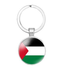 vmcoatdu パレスチナ 国旗 キーホルダー キーリング ギフト 男性 女性 キーチェーン ステンレススチール 象嵌ガラス素材, 画像, One Size