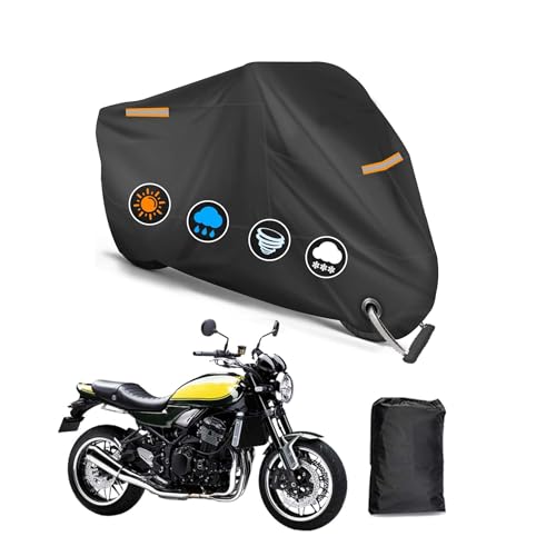 カワサキ Z900RS専用のバイクカバー。UVカット、凍結防止、盗難防止機能付き。3つの反射ストリップ設計で安全性向上。ワンタッチバックル、ロック穴、収納バッグ付きで便利。オールシーズン対応。