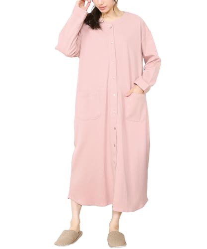 マタニティ パジャマは、長袖のワンピース型で綿100%。前開きで授乳対応、スムース素材の伸縮性が特徴。ロング丈で快適な着心地の授乳服。色はピンクベージュ、サイズはL(72512)です。