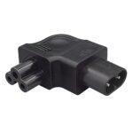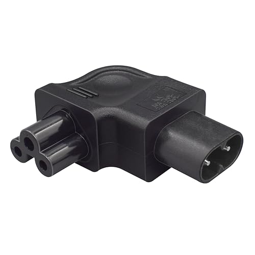 JORINDO IEC320 C8-C5 AC電源コンバーターは、L字型デザインで、2ピンC8プラグから3穴C5ジャックに変換します。PCやスマートテレビに最適です。