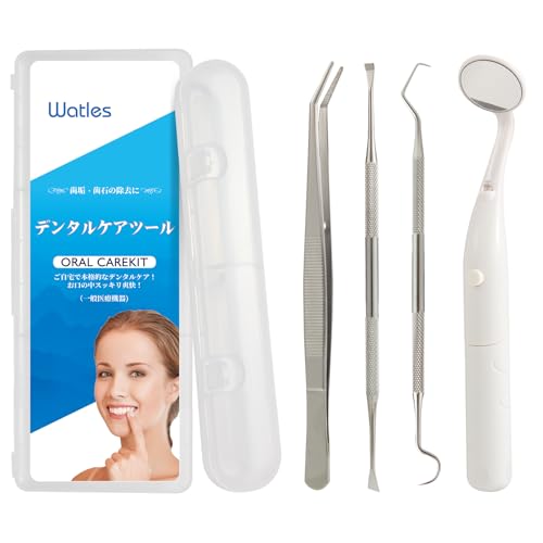 Watles歯石除去キットは、LED歯鏡と4本のスケーラーを含む歯石取り器具のセットです。自宅で簡単に歯石除去ができ、口腔ケアに最適なツールです。